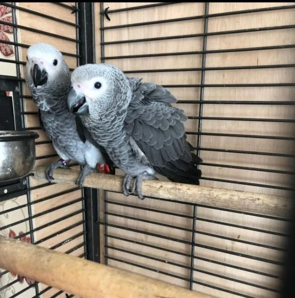 Coppia di pappagalli cenerini africani ben addestrati e parlanti disponibili per la vendita. Inoltre vengono forniti con una gabbia per pappagalli gratuita con giocattoli con cui giocare. Questi pappagalli possono anche essere consegnati.
