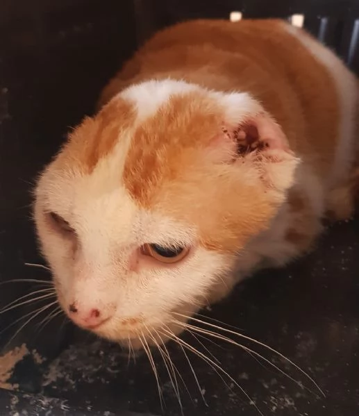 Angelina ha 3 anni circa, è fiv positiva ed è stata operata alle orecchie per un tumore.