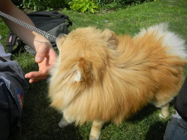 Bellissimo, intelligente ed affettuoso esemplare di Spitz tedesco nano, manto crema / arancio, peso 5,5 kg, pedigree ENCI, disponibile per monta zona Roma e Latina. Dettagli in privato.