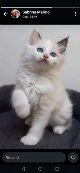 Vendo cucciolina Ragdoll purissima con pedigree Enfi seal bicolor disponibile dal 15 dicembre svezzata sverminata e vaccinata con libretto sanitario abitata alla lettiera.