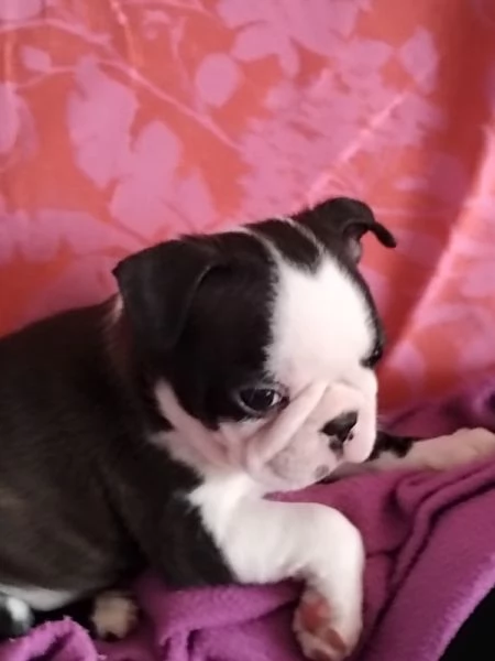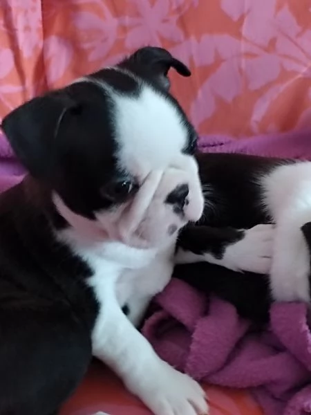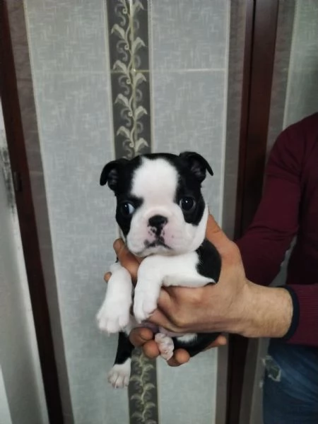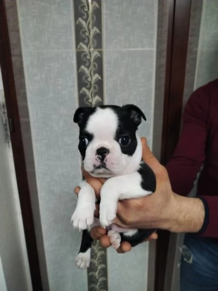 “Forti e affettuosi cuccioli di Boston terrier, maschio e femmina, con pedigree. Vaccinati e sverminati, genitori visibili. Razza fedele e protettiva, adatta a chi cerca un compagno sicuro e ...