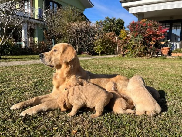 “Disponibili splendidi cuccioli di golden retriever, maschio e femmina, dal carattere equilibrato. Vaccinati, sverminati, con pedigree, genitori visibili. Compagni ideali per famiglie con ...