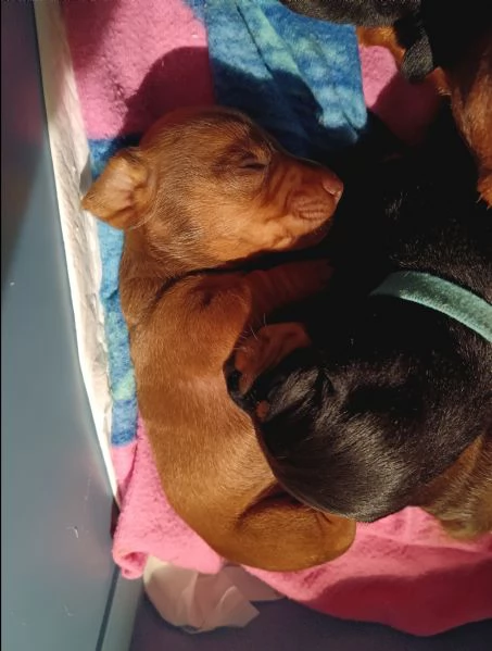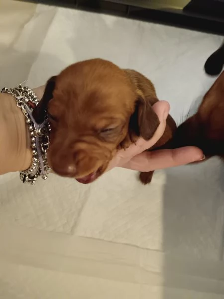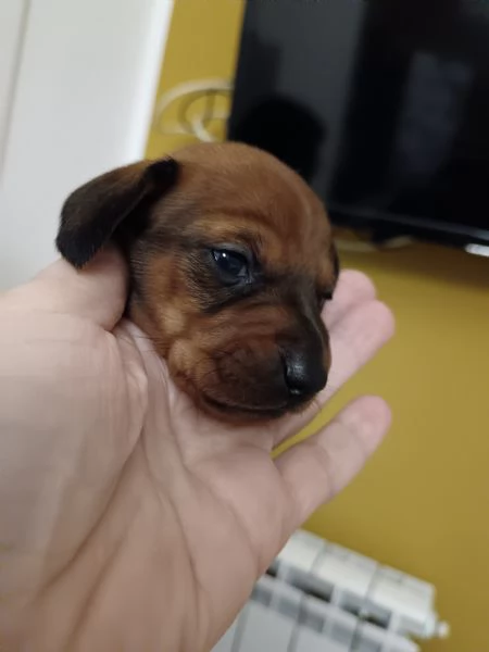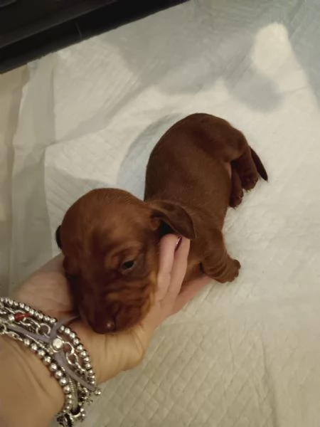 Nati il 29 novembre da genitori bassotti nani a pelo corto con pedigree alta genealogia e conferma di taglia nana, color fulvo la mamma e marrone focato (cioccolato) il papà, 4 splendidi cuccioli prenotabili e cedibili da fine gennaio in poi, saranno ceduti provvisti di certificazione, vaccino, microchip e pedigree. Genitori visibili.