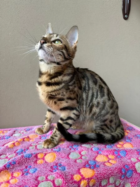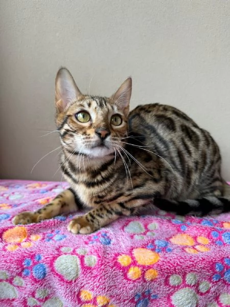 splendidi Bengala di 3 mesi. i piccoli sono nati in casa, abituati a bambini e ai cani e verranno ceduti al compimento del terzo mese d' età, con pedigree, certificato veterinario di buona salute, ...