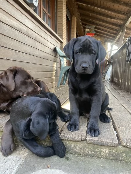Cuccioli neri e cioccolato di alta genealogia, padre Natanheart Quarterback madre Oakenheart Aranel genitori esenti displasia anche e gomiti e malattie genetiche ereditarie Nati il 25 ottobre 2024