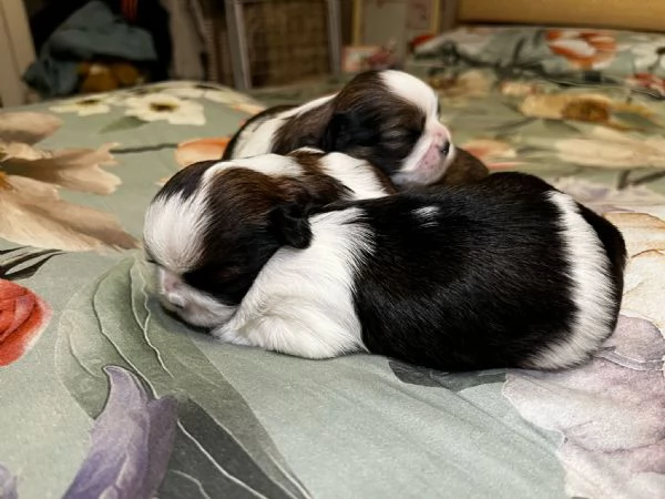 bellissimi stupendi cuccioli Shih Tzu. Maschio quasi tutto bianco e femmina bianco-nera! Razza pura. Taglia piccola circa 5 kg. disponibili con il libretto, primo vaccino, certificato della salute ...