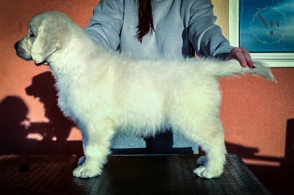 Splendido cucciolo maschio di Golden retriever linea chiara inglese 2 mesi e mezzo di età , genitori ambidue esenti da displasia anca gomito,carattere dolcissimo abituato a stare con i bambini, ...