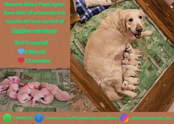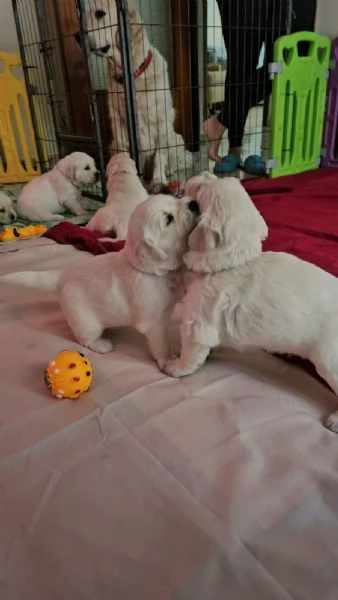 “Disponibili splendidi cuccioli di golden retriever, maschio e femmina, dal carattere equilibrato. Vaccinati, sverminati, con pedigree, genitori visibili. Compagni ideali per famiglie con bambini: ...