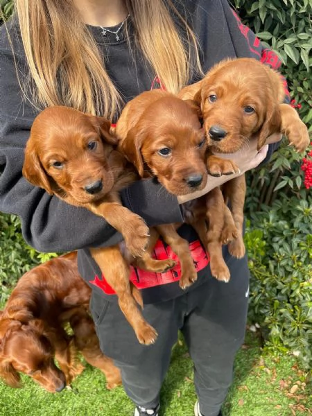 cuccioli di setter irlandese. cuccioli ceduti a 60 giorni pronti per entrare nelle vostre famiglie,vaccinati e sverminati. ottimi per la compagnia. solo amanti di animali, no perditempo per altre ...