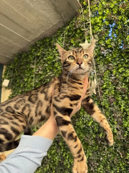 Disponibile bengala maschio di 13 mesi, per monte esterne. Test genetici ok, test fiv e felv negativo. Vaccinazioni regolari. Ha un carattere molto buono. è abituato con altri gatti, e anche ...