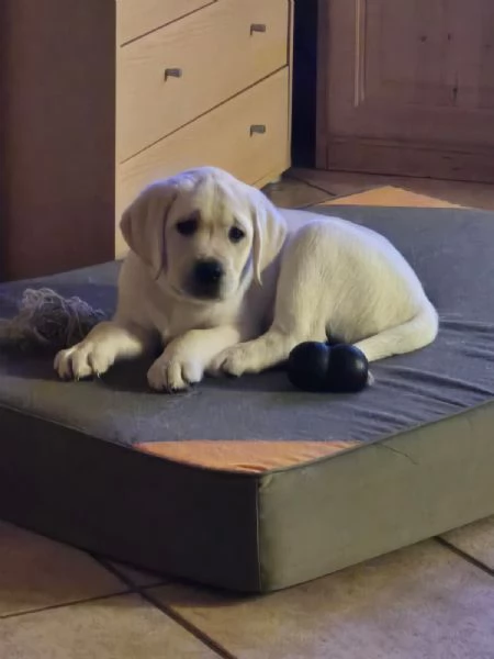Cuccioli maschi di labrador retriever, disponibili un biondo uno nero Madre: Joywave Wabi Sabi (HD A; ED 0, Ecocardio FSA normale, Visita oculistica annuale FSA, DNA depositato Clear by parentage: prcd-PRA, SD2, CNM, HNPK, RD/OSD EIC: carrier BbEe (porta choco e giallo) Padre: Big Show Willing to Please (Giovane campione italiano, Campione italiano di bellezza, Riproduttore selezionato ENCI, HD A, ED 0, Visita oculistica annuale, DNA depositato Clear: EIC, SD2, STDG, CNM, RD/OSD, prcd-PRA, HNPK, NARCOLESSIA BBee) I cuccioli crescono in casa, a contatto con persone e con cani adulti equilibrati, abituati ai rumori e alla quotidianità casalinga. Verranno ceduti con: -Microchip -libretto sanitario -prima vaccinazione -sverminazione -esame parassitologico e giardia -pedigree ENCI/FCI -puppy kit -Test dei genitori visibili I cuccioli si trovano a Trento Contatti solo whatsapp: Alessia [hidden]