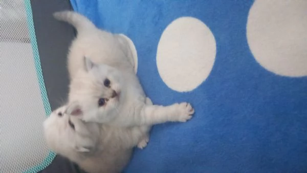 Disponibili 1 femmina e 1 maschietto scottish straight, nati in ambiente di il 12 [hidden] molto teneri ,affettuosi e sono abituati cin i bambini. Entrambi genitori vaccinati e testati Fiv e Felv negativi. I cuccioli verranno ceduti con il primo vaccino, doppia sverminazione, abituati alla lettiera e ai tiragraffi. Per altre informazioni mi potete contattare tramite WhatsApp [hidden]