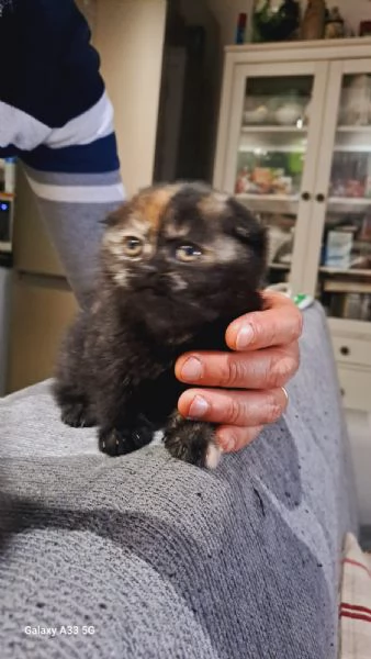 Una femmina Scottish Fold colore Tricolor