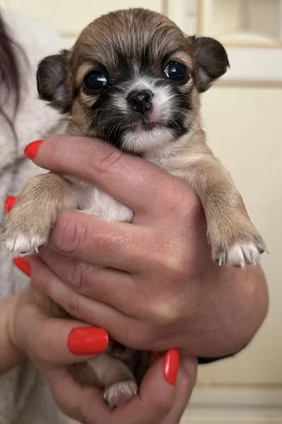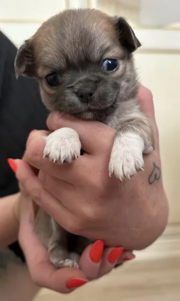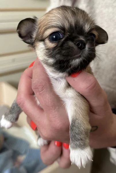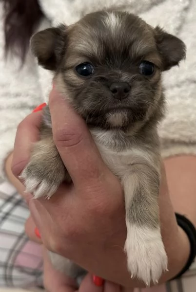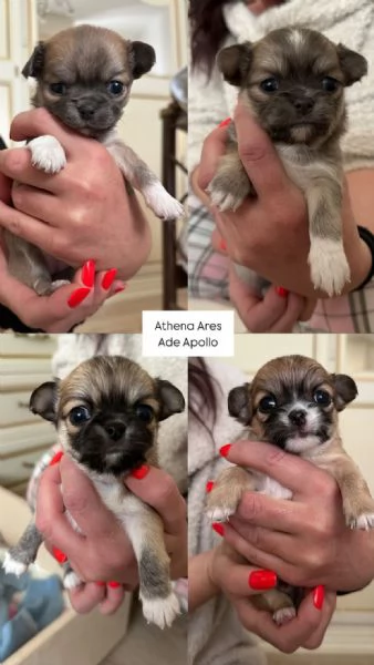 Vendesi 3 cuccioli di chihuahua, nati il 12 Maggio da mamma e papà (in foto) con pedigree. Sesso: maschio/femmina. Colori: nero, grigia, tortora. Pelo lungo . Luogo del ritiro: provincia di L'Aquila. ...