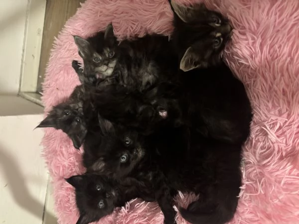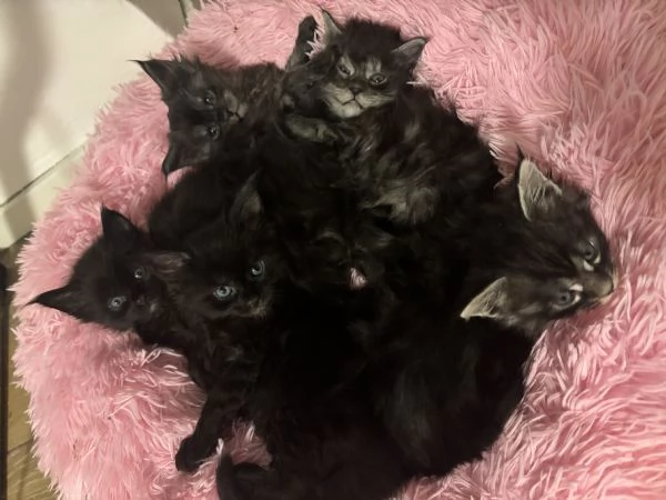 Meravigliosi gattini Maine Coon, con pedigree, cercano una casa che li accolga con amore. Sono cresciuti in famiglia con i bambini. Potranno lasciare la mamma a fine giugno. Verranno ceduti vaccinati e sverminati. I genitori, entrambi con pedigree, sono stati sottoposti ai test genetici prescritti per la razza.