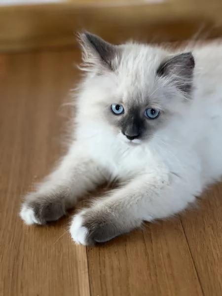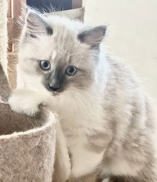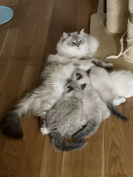 Bellissimi cuccioli Siberiani Neva Masquerade maschi. I genitori sono entrambi Siberiani Neva con pedigree. I cuccioli stanno crescendo in un ambiente domestico e familiare insieme ai loro genitori. Sono molto ricercati da persone con allergie.