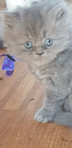 Questa femminuccia ha una struttura robusta e diventerà sicuramente una bella gattona con un pelo splendido del colore blu tipico dei Persiani. l