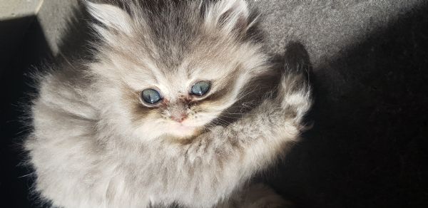 Questo gattino dalle belle sfumature grigio blue è nato dai miei gatti persiani normotipici. La mamma e' una mia persiana normotipica blue e il papà un mio persiano normotipico ...