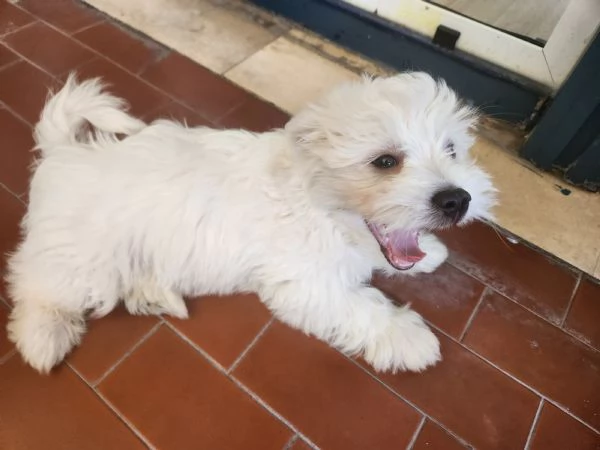 Maltese di 4 mesi maschio vaccinato e sverminato con tesserino sanitario molto affettuoso e giocherellone fa i bisogni sulla traversina e molto intelligente come da sua caratteristica di razza