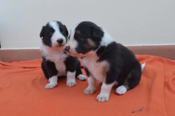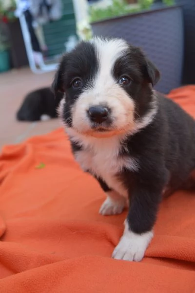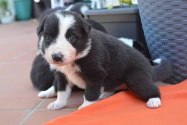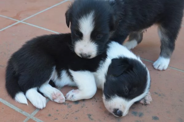 Cuccioli di border collie nati 1 luglio da genitori con pedigree aspettano famiglie che li accolgano. Teneri, affettuosi e giocherelloni. Sverminazione, vaccinazione e microchip compresi.