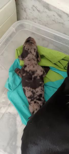 Disponibile dal 25 Agosto cucciola di bassotto nano Arlecchino.