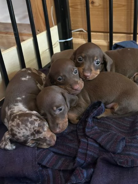 Accettiamo le prenotazioni per favolosi e dolcissimi cuccioli di Bassotto nano nei colori: crema, rosso cervo, nero focato, cioccolato, arlecchino cioccolato e silver arlecchino.