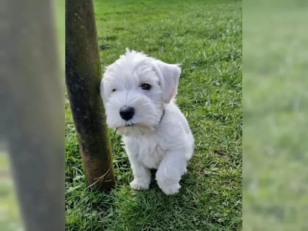 Bellissimi cuccioli di Schnauzer nano bianco cercano una nuova casa amorevole