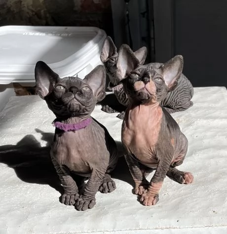 Cuccioli gatti sphinx due femmine e un maschio (gomma) tre mesi. Si cedono vaccinati e sverminati. Max serietà e solo veramente interessati.